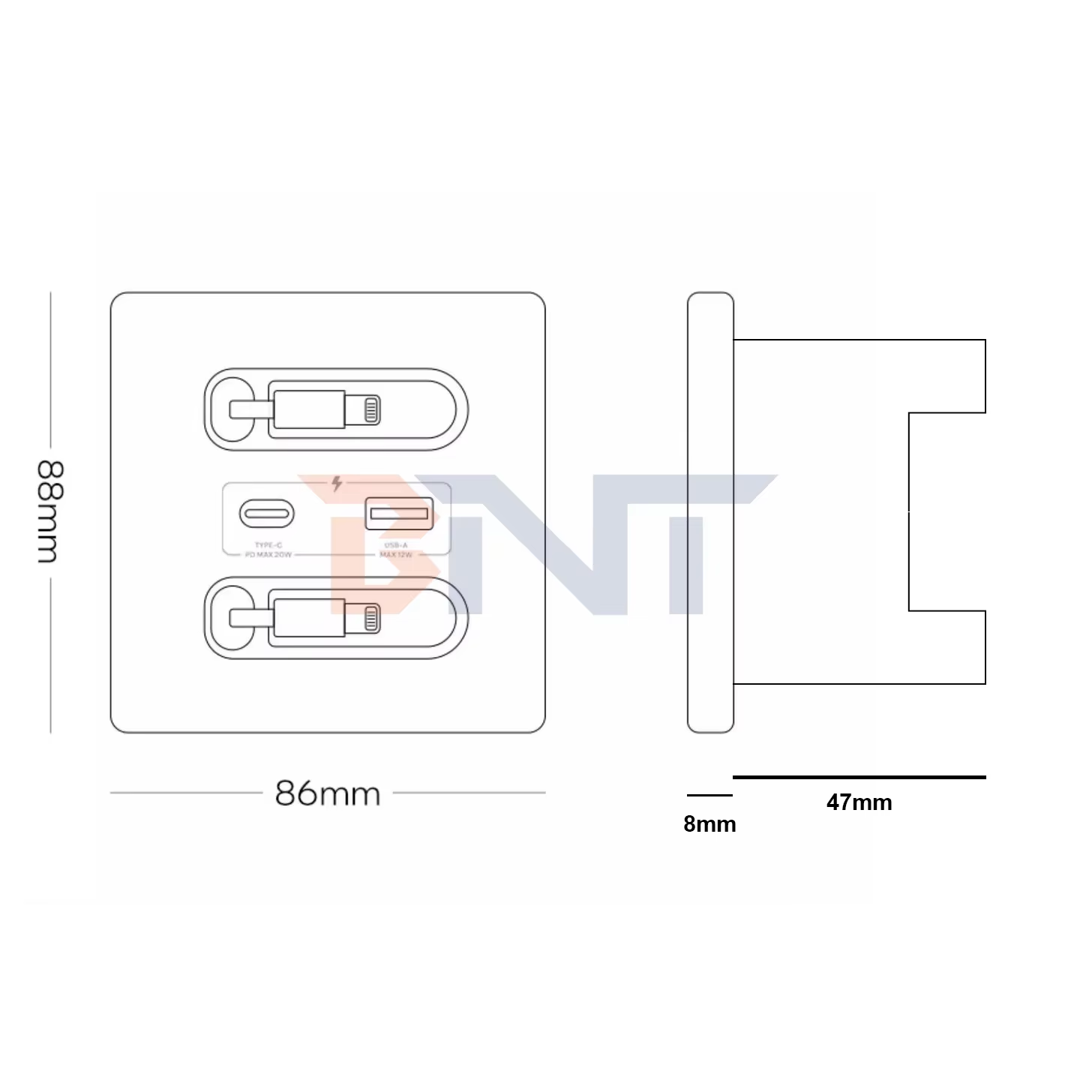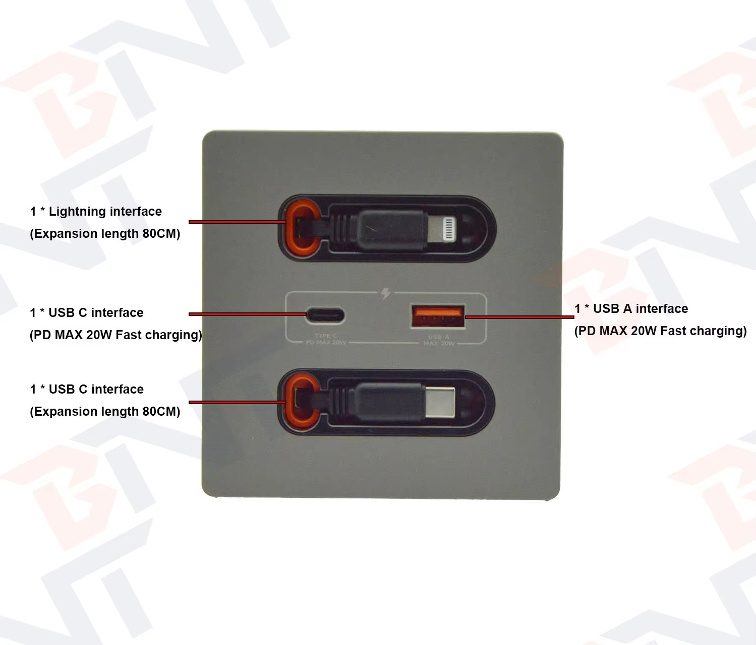 1*Lighting+1*USB C+1*USB C+1*USB ABNT Wall switch Description
