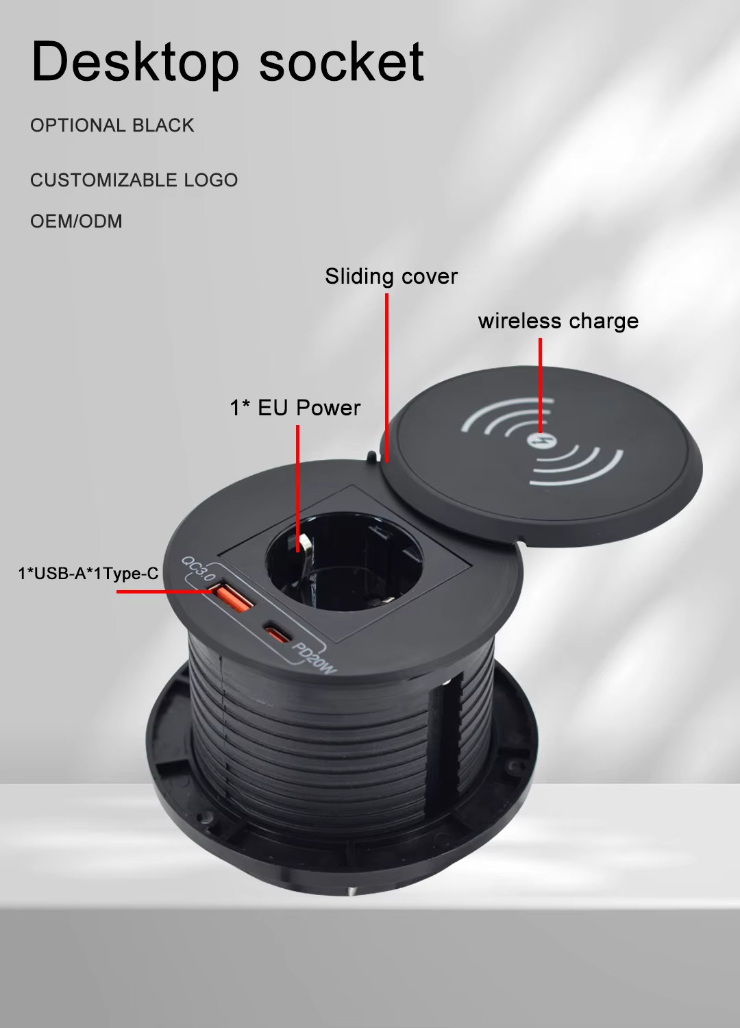 1. Power outlet: EU Standard Power Socket,2 Type A+1 Type C
